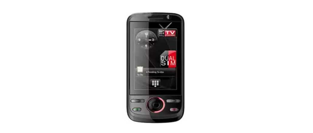 Jaringan: Dualband GSM (900/1800 MHz) & Dual On; Dimensi: 112 x 53 x 13.7 mm; Berat: 80gr; Layar: 3.0 inci, TFT touchscreen WQVGA; Transfer data: GPRS; Kamera utama: 2.0 MP, 1600×1200 piksel, video recorder; Kamera depan: VGA; Memori internal: 128+32 MB; Memori eksternal: microSD up to 4GB; Messaging: SMS, MMS, Email; Konektivitas: Bluetooth, kabel data; Browser: WAP, Opera Mini; Fitur lain: Polifonik (MP3), MP3/3GP/AVI player, radio FM, Java, ebook reader, Blacklist, Modem, webcam, Organiser, calendar, calculator, alarm, speakerphone, audio recorder, voice memo, game; Baterai: Lithium ion 900 mAh; Standby: 200 jam; Talktime: 5 jam